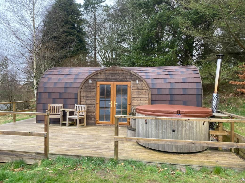 Kendoon Cabin is a eco pod offering spacious well furnished accommodation with a wilderness setting on the shore of Loch Kendoon. The pod is in the heart of the Galloway Forest Park ensuring peace and tranquillity together with wildlife on the doorstep; if you are looking for stars, red squirrels, stags and ospreys look no further! The accommodation includes a wood fired hot tub so they you may make the most of the star watching opportunities of given by the Dark Skies. The large patio doors and deck area make it easy to enjoy the breathtaking views over the loch to hills beyond, the deck area also makes a pleasant place for al fresco dining. There is direct access to Forestry Commission trails to allow unrivalled opportunities for outdoor pursuits and seeing the wildlife of the area including Red Kites, Ospreys and even possibly Golden Eagles. The Ospreys regularly visit the loch and near by Loch Doon also has an Osprey observatory with a web cam link to the local nest.